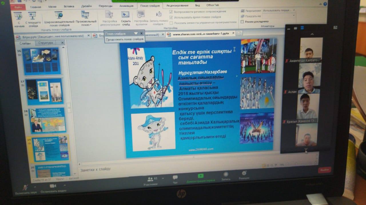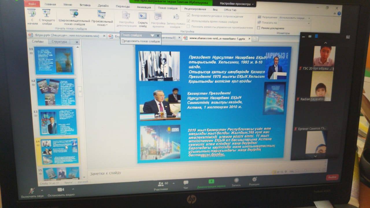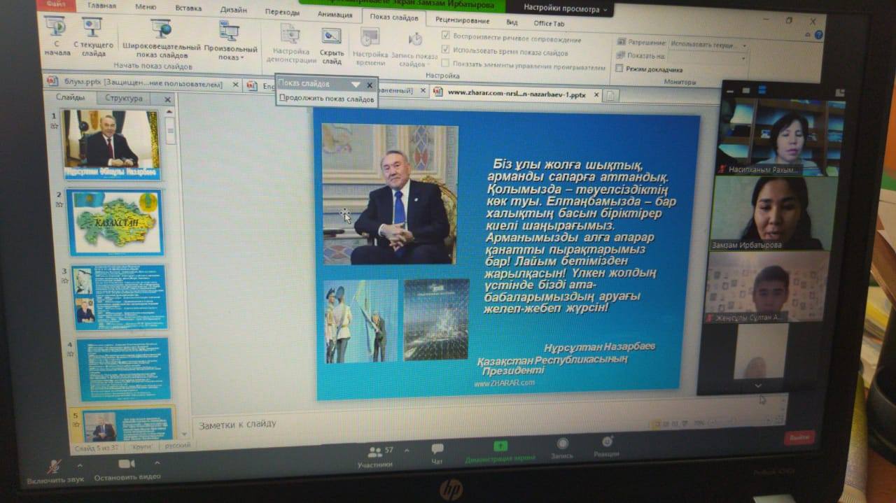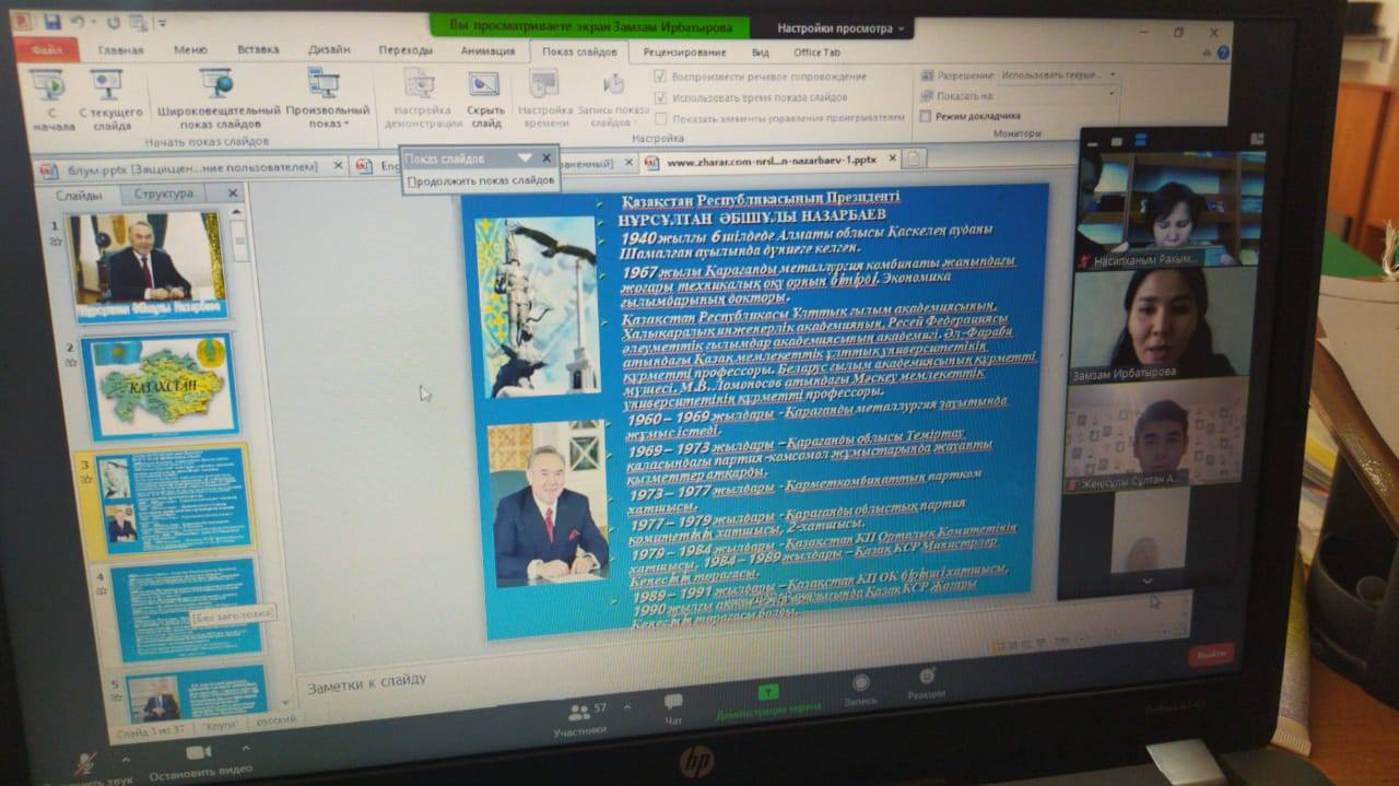 30 қараша «1-желтоқсан-Тұңғыш Президент күні» мерекесінің мәнін ашу, Нұрсұлтан Әбішұлы Назарбаевтың өмір жолы, туып өскен, оқып білім алған, қызмет еткен жерлері туралы мағлұмат беру, Елбасындай Отанын, халқын сүюге, нағыз азамат, шынайы патриот болуға тәрбиелеу, студенттердің бойында Елбасына деген сүйіспеншілік, құрмет сезімін қалыптастыру мақсатында ашық тәрбиелік шара өткізілді.