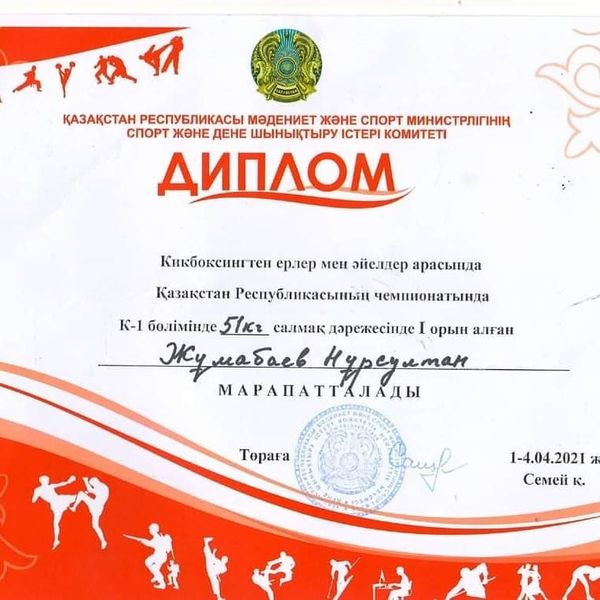 Атырау көлік және коммуникация колледжінің «Газэлектрмен дәнекерлеуші» мамандығының 3 курс студенті Жұмабаев Нұрсұлтан 2021 жылдың 1 – 4 сәуір аралығында Семей қаласында өткен Кикбокcингтен ерлер мен әйелдер арасында Қазақстан Республикасының чемпионатында К – 1 бөлімінде 51 кг салмақ дәрежесінде І орын иеленіп Қазақстан Республикасы мәдениет және спорт министрлігінің спорт және дене шынықтыру істері комитетінің дипломымен марапатталып Атырау қаласының қоржынына бір «Алтын медаль» қосты. Намысты қолдан бермей, көк байрағымызды биікте қалықтата білген жас студент спортшымызға тек жеңісті сәттер тілейміз!
