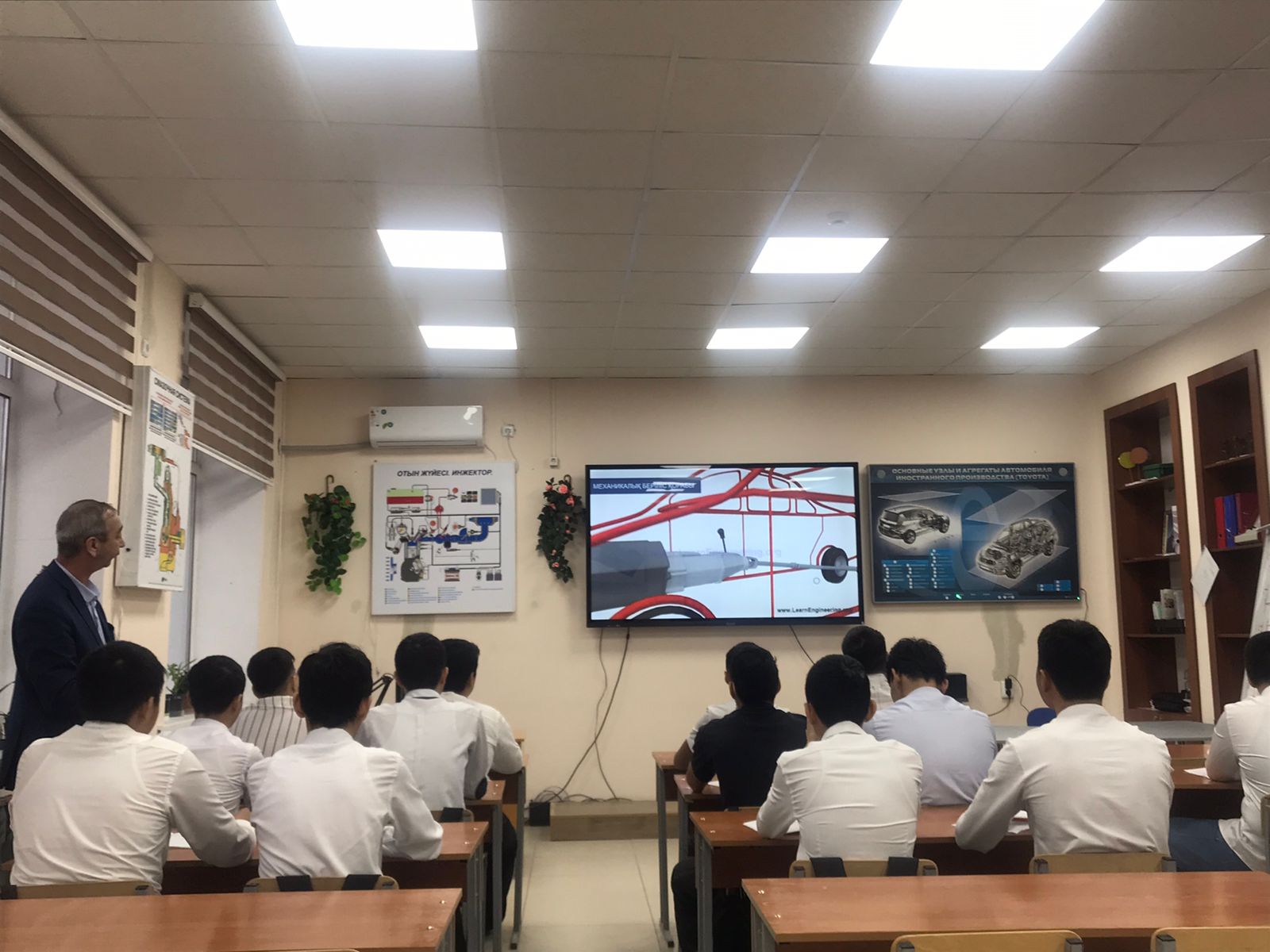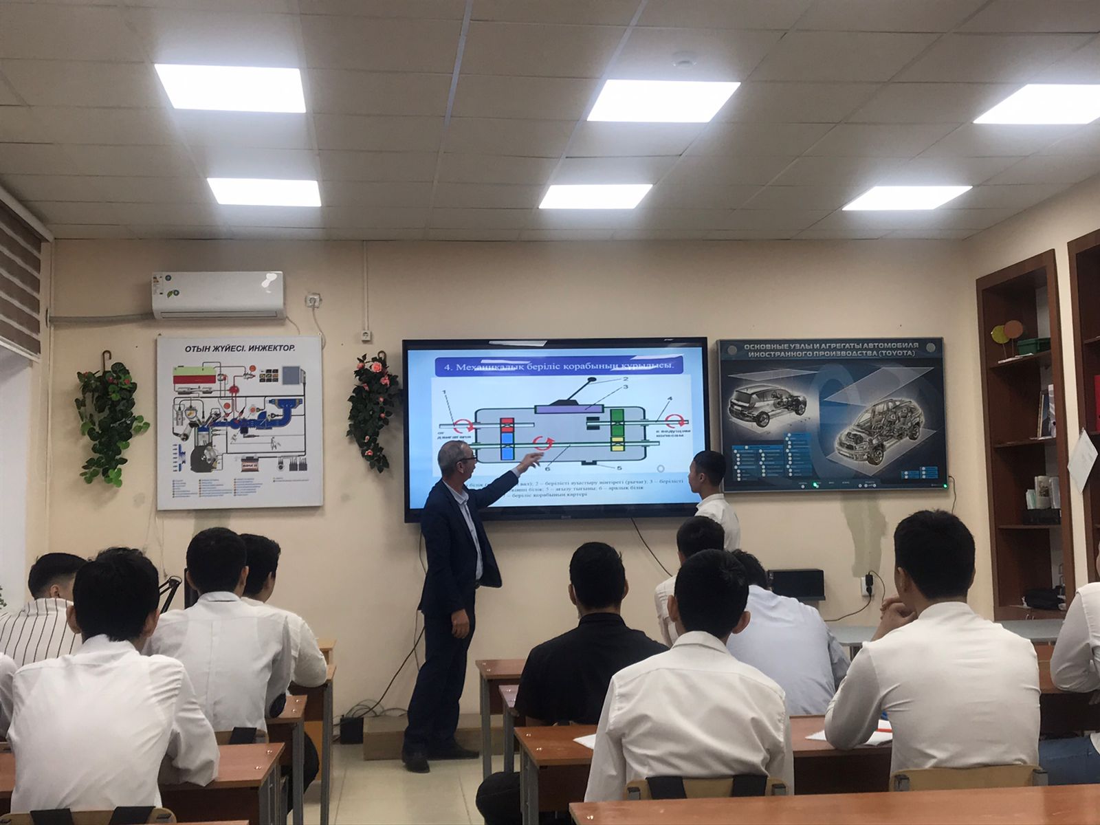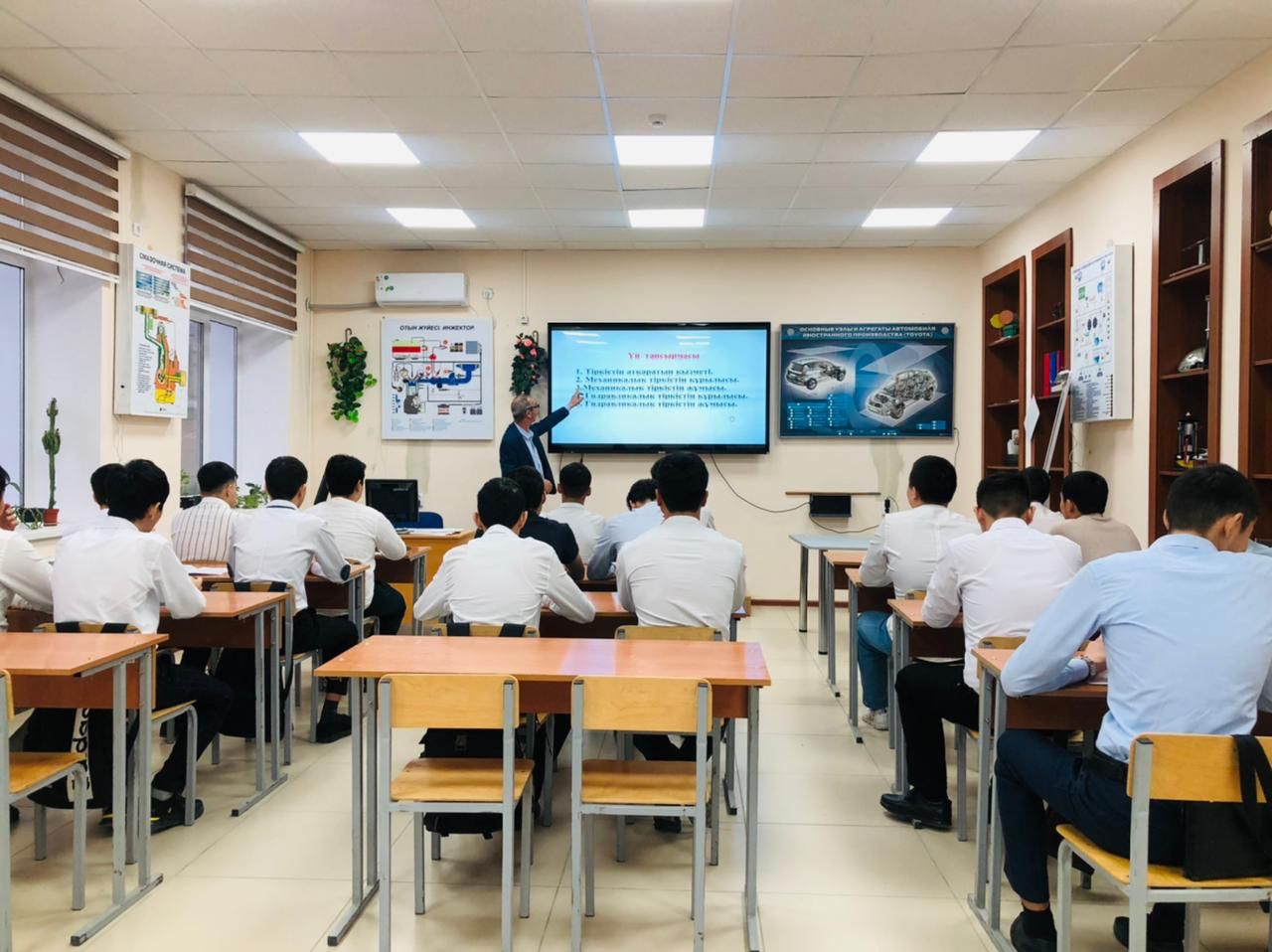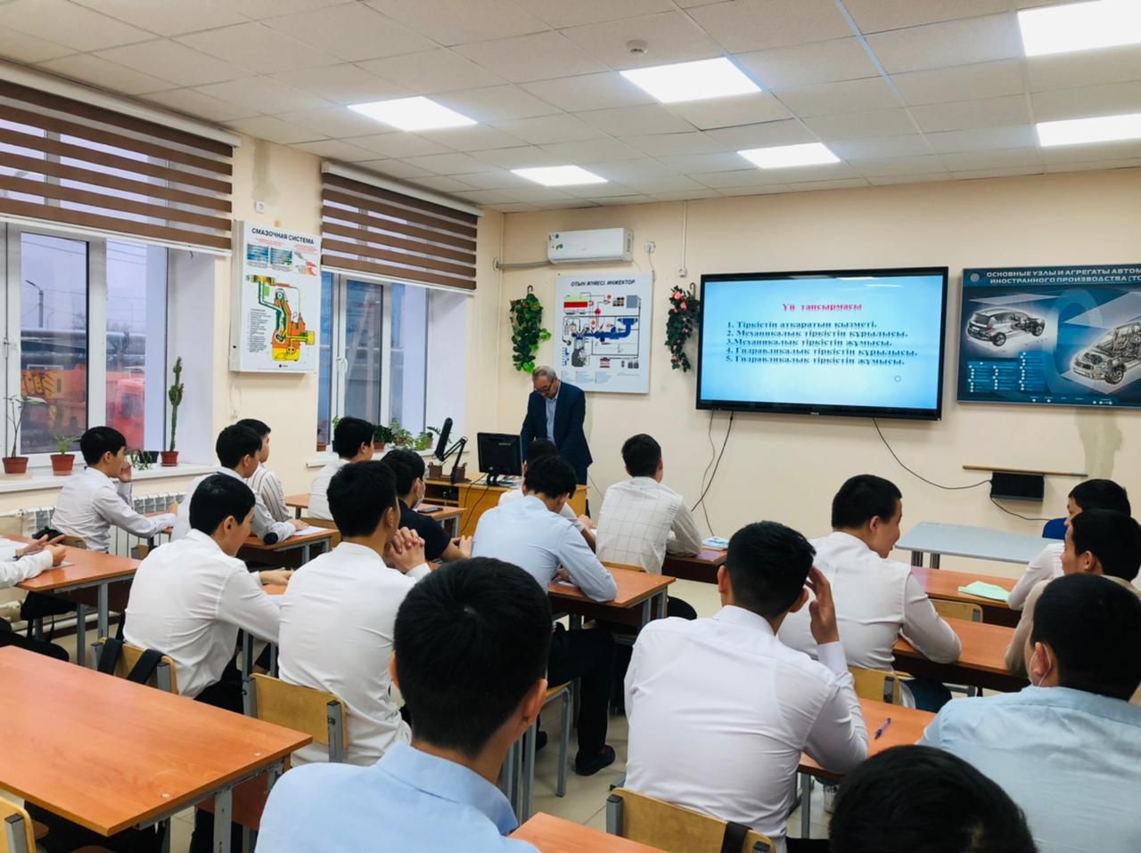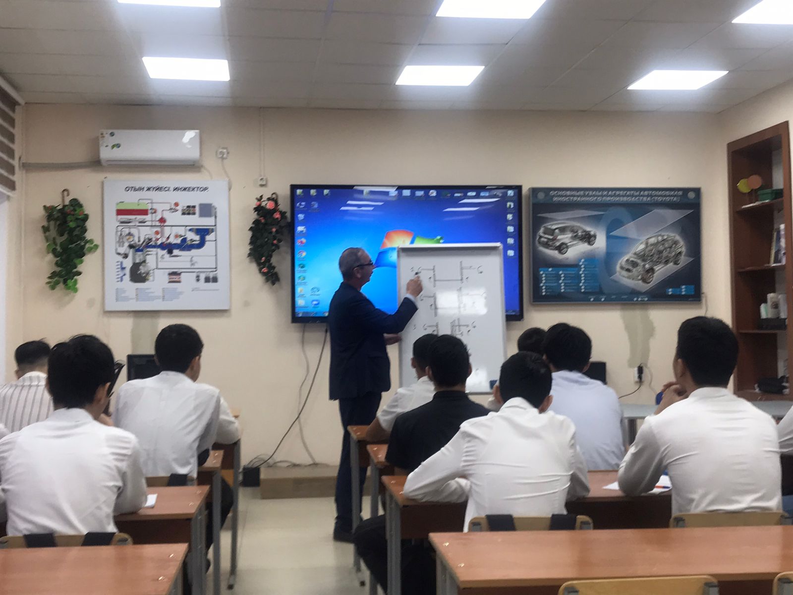 Колледжімізде оқу-әдістемелік апталықтар аясында «Жол құрылыс машиналарының машинисі» мамандығы бойынша "Автомобиль құрылысы" пәні оқытушысы Харипов Махамбет Ерімұлының "техник - механик" тобы студенттеріне "Автомобильдердің беріліс қорабы" тақырыбында өткізген сабағы.
