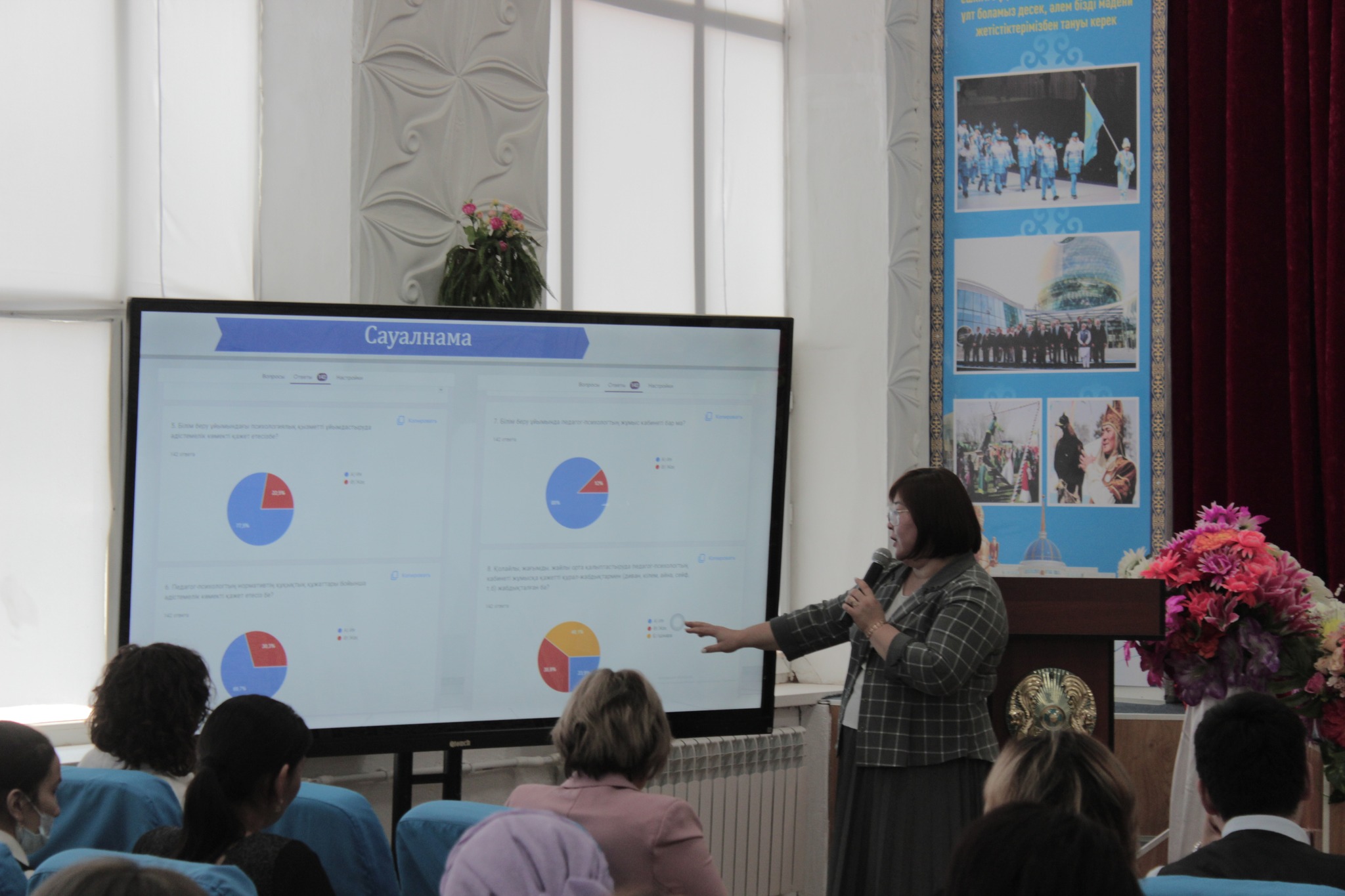 Қала, аудан бойынша білім беру ұйымдарынан келген психологтар тренингтер өткізіп, өзара іс тәжірибелерімен бөлісті.