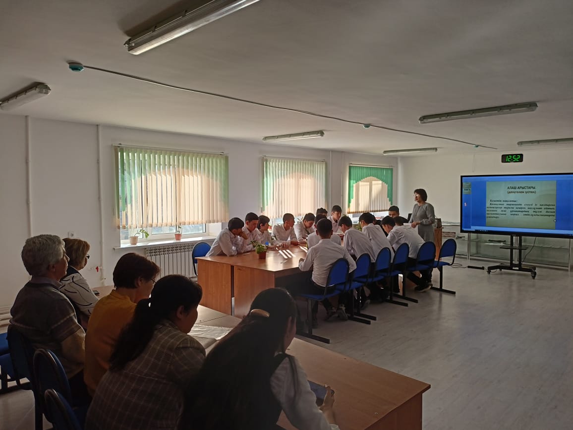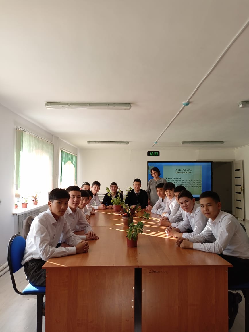 25.01.2023 ж Студенттерге қазақ халқының ғасырлар бойы өткен қиыншылықтарын айта келіп, осы зұлмат жылдары елінің азаттығын аңсаған ұлт зиялыларына тоқталу, өз елін, жерін қорғайтын ұрпақ тәрбиелеу мақсатында «Алаш арыстары» тақырыбында колледж кітапханашысы Б.Измағанбетованың ұйымдастыруымен І курс ЭТМ 1-22 топ студенттеріне дөңгелек үстел өткізілді. Шара барысында студенттер қойылған сұрақтарға жауап беріп, өзара пікір алмасты.
